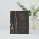 Le bord gauche de cet élégant mariage moderne, sauf la carte de date, est doté d'une bordure en aquarelle noire taillée avec une parties scintillant en faux or. Le texte personnalisable combine écriture manuscrite couleur or, cuivre et polices italiques sur un arrière - plan non noir. L'envers est assorti d'un design d'agate noir et or.