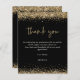 Budget Black Gold Parties scintillant 2024 Graduation Merci. Un prix économique plus petit (4.5 x 5.6") semi-brillant qui est un stock de carte de 110 gsm, semblable en épaisseur à une carte postale. REMARQUE : ONE par feuille. D'élégantes bordures de confettis en faux parties scintillant doré sont en haut et en bas et aussi à l'arrière. La graduation est conçue dans un style d'écriture moderne. Personnalisez facilement le reste du texte à vous.