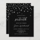 Ce design moderne présente des confettis triangulaires en feuille d'argent faux sur un arrière - plan noir. Le mot "soixantième" apparaît dans un élégant script gris clair. Personnalisez l'invitation avec le nom de l'invité d'honneur dans le script, ainsi que la date, le lieu et d'autres détails dans la police sans serif. Le texte peut être customisé pour n'importe quel anniversaire d'année.