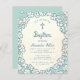 Papier Budget Bleu Blanc Floral Frame Baptême Invitation