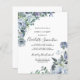 Roses, pivoines et fleurs sauvages bleus poussiéreux décorent une jolie invitation budgétaire florale à fêter ses 16 ans. La calligraphie moderne ajoute au Boho Vibe.