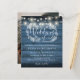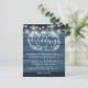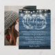 Doté de jolies lampes à cordes et d'une guirlande florale dessinée à la main, cet élégant faire-part de mariage rustique et économique peut être personnalisé avec vos informations en lettrage chic sur un arrière - plan de panneaux de bois bleu et votre photo spéciale au verso. Conçu par Thisisnotme©