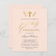 Une fausse feuille d'or moderne, simple et élégante première invitation de communion sainte avec calligraphie d'or et croix chrétienne au sommet avec des branches autour sur un arrière - plan rose roux. Dans le cadre de la sélection du budget ici sur Zazzle, ces invitations viennent en tailles limitées et stocks papier. Si vous avez besoin d'un stock de format ou de papier différent, cette conception peut être transférée dans un format standard 5x7 à l'aide de l'outil de transfert de conception pour plus d'options.