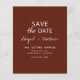 Budget Personnalisez ce Boho Terracotta Brown Photo Arch Simple et élégant Double face Enregistrer la date Invitation avec votre message et les détails. Cette invitation chic comprend une typographie manuscrite moderne et élégante pour la célébration du Mariage spécial Be.