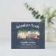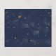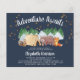 Une invitation au baby shower rustique et économique, avec une jolie illustration d'animaux de bois campant avec leur tente dans les montagnes et la forêt, une superposition d'étoiles dorées dans un ciel nocturne et "Adventure Awaits" et le nom de la future mère dans un script blanc.