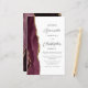 Le bord gauche de cette élégante faire-part de mariage moderne est orné d'une bordure d'aquarelle rouge bordeaux et ornée d'une parties scintillant en faux or. Le texte personnalisable combine le script gris charbon et les polices sans serif sur un arrière - plan blanc. Un motif d'agate bordeaux correspondant apparaît au verso de la carte.