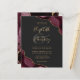 Un motif d'aquarelle rouge bordeaux, taillé avec une parties scintillant en faux or, apparaît dans deux coins de cet élégant design. Personnalisez-le avec les noms du couple en écriture manuscrite de couleur or sur une grande carte grise. Ajoutez les détails du mariage en cuivre doré et en polices italiques sur un arrière - plan noir en ardoise. L'envers est assorti d'un design d'agate bordeaux et or. REMARQUE : Les enveloppes ne sont pas automatiquement incluses dans ces invitations budgétaires, alors n'oubliez pas de choisir l'option "enveloppes blanches" !