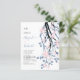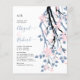 BUDGET Branche bleue Dusty avec fleurs roses rousses et initiales faire-part de mariage avec code QR pour RSVP. Un joli design pour votre mariage avec une branche bleue et noire en cascade avec des fleurs rose vif. Le dos est de couleur bleu poussiéreux et comprend le code QR.