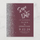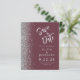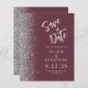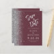 Le bord gauche de cet élégant mariage moderne, à l'exception de la carte de date, comporte une bordure en faux parties scintillant argent. Le texte personnalisable combine écriture manuscrite gris argent et police sans serif sur un arrière - plan rouge bordeaux. L'envers présente un design bordeaux et argenté assorti.
