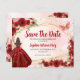 Maroon rouge Parties scintillant d'or de Bourgogne moderne étinceler Floral Rose Butterfly Princess Quinceañera Anniversaire Enregistrer la date Annonce