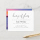 Oui ! Des circonstances imprévues se produisent, et quand elles le font, vous pouvez facilement faire savoir à vos invités d'une manière amusante et facile que vous avez besoin de reporter votre date de mariage avec cette carte minimaliste de report mariage noir et blanc. Avec "changement de plan" dans une police de calligraphie chic avec une simple typographie serif. Dans le cadre de la sélection du budget ici sur Zazzle, ces invitations ne sont pas fournies avec des enveloppes et ne s'insèrent pas dans une enveloppe de taille standard. La taille la plus proche est A6 mais il y aura un écart d'environ un demi-pouce. Si vous n'avez pas peur du manque de douceur, vous pourriez utiliser des enveloppes A6 aussi largement disponibles. Sinon, cette conception peut être transférée dans un format standard 5x7 (avec enveloppes) à l'aide de l'outil de transfert de conception. À titre d'exemple, au moment de la rédaction du présent document, 100 invitations budgétaires (y compris une remise sur le volume) coûteraient environ 39 $, alors que 100 invitations standards 5x7, y compris des enveloppes, coûteraient environ 135 $. Votre kilométrage peut varier en fonction des codes promo disponibles de Zazzle, des ventes à l'échelle du site ou des changements de prix.