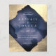 Invitations de mariage élégantes avec une couche d'aquarelle marine en forme de losange avec des coins dorés au champagne. Vos détails s'affichent avec une typographie élégante et élégante combinant des polices de script et de serif. Dans le cadre de la sélection du budget ici sur Zazzle, ces invitations viennent en tailles limitées et stocks papier. Si vous avez besoin d'un stock de format ou de papier différent, cette conception peut être transférée dans un format standard 5x7 à l'aide de l'outil de transfert de conception pour plus d'options.