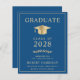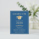 Élégante et abordable faire-part classique de graduation bleue avec une casquette de graduation d'or et une simple typographie moderne de l'or léger pour le nom du diplômé, année de classe, lycée, collège ou université, diplôme et majeur ou distinctions.