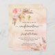 Un arrière - plan d'or rose, rustique et rustique à l'aspect rustique et rustique. Décoré de fleurs roses dorées et roses, de roses, d'herbe de pampas et d'une croix dorée. Personnalisez et ajoutez un nom et des détails.