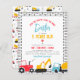 Invitations à la fête d'anniversaire de garçon sur le thème de la construction budgétaire. Célébrez la journée spéciale de votre petit avec cet invitation d'anniversaire de camions de construction modernes! Un modèle d'invitation à la fête d'anniversaire amusant pour une fête d'anniversaire sur le thème de la construction! Cette conception comprend trois véhicules de construction : un tracteur, un creuseur et un camion de ciment au bas de la carte. L'invitation dit : "Arrêtez la circulation, fermez la route !" avec le nom et l'âge du garçon d'anniversaire se terminant par "ans !" pour rimer ! Ci-dessous, un mini-panneau séparant les détails de l'événement du haut du texte. Les détails de l'événement sont écrits dans de grandes capitales audacieuses, avec un message personnalisé (nous avons choisi "impatient de vous voir !") en bas. Derrière la typographie, un motif en brique se trouve au bord de la carte pour s'adapter au thème du bâtiment ! Les couleurs sont un mélange éclatant de rouge, bleu et jaune. Les cartes sont retournées à un motif d'autres véhicules de construction, grues, camions à benne, bulldozers, pelles et même quelques petits arbres ! Invitations de la fête pour enfants qui sont parfaits pour tout âge, 1er, 2e, 3e, 4e, 5e, 6e, et même 7e ou 8e ! Il existe une version d'invitation standard de ce design disponible dans notre magasin. Il s'agit d'une option de papier budget et nous recommandons seulement la finition semi-brillante. Pour customiser ces cartes, cliquez sur "Personnaliser" et éditez le texte dans les cases fournies. Pour les modifications plus avancées, faites défiler la page pour "Customiser plus loin" et utilisez l'outil de design facile à utiliser de Zazzle pour rendre ces cartes uniques à vous ! N'hésitez pas à m'envoyer un message pour toute question ou demande de commande personnalisée - Je serai heureux de vous aider!