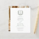 Présentez votre mariage avec une invitation vert sauge époustouflante dotée d'un monogramme de blason floral élégant. La douce teinte vert sauge exsude une beauté naturelle et une sérénité, tandis que le blason floral ajoute une touche intemporelle et sophistiquée. Parfaite pour les couples à la recherche d'un design raffiné et gracieux, cette invitation allie un charme classique à une élégance moderne. Le monogramme personnalisé la rend unique, donnant le ton à une célébration inoubliable. Idéale pour les mariages en plein air ou formels, cette invitation reflète magnifiquement votre journée spéciale.