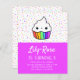 Invitations amis et la famille pour célébrer votre fille à cinq ans avec cette mignonne invitation de fête d'anniversaire de cupcake arc-en-ciel.