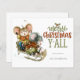 Mignonne Mice Sleighing Joyeux Noël Carte Nom. Un prix économique SMALLER 4.5" x 5.6" alternatif dans un STOCK CARTE SEMI GLOSS 110 lb qui est similaire en épaisseur à une carte postale. Les enveloppes sont légèrement plus grandes que la taille de la carte.
