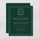 Ce design classique et élégant d'invitation à la fête de graduation comprend un monogramme couleur or initial en police serif ouverte encerclé par une ligne art acanthus crête sur un arrière - plan vert foncé. Personnalisez le texte avec le nom du diplômé et les détails du parti. Le dos de la carte est vert solide. Idéal pour un diplôme d'études secondaires, collégiales ou universitaires.