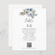 Élégant mariage floral bleu poussiéreux numéro de table et tableau de sièges avec liste d'invités et code QR personnalisé