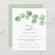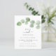 Budget Elegant Eucalyptus QR code Enregistrer la date Un prix budgété SMALLER 4.5" x 5.6" alternative. Disponible dans un STOCK SEMI-GLOSS 110 lb CARD qui est l'option par défaut (plus épais pour les invitations), OU un STOCK SATIN FINISH 80 lb THINNER PAPER (idéal pour les boîtiers). Ajoutez votre code QR à votre site Web mariage au verso. Une élégante branche d'eucalyptus en vert avec une touche d'or coule du haut à droite. Personnalisez facilement le texte à vos propres détails. Vous pouvez également modifier les styles et les couleurs de texte ainsi que les couleurs arrière - plans via l'option customiser plus si vous le souhaitez.