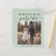 Un petit mariage moderne et abordable ou un petit faire-part pour informer la famille et les amis que vos plans de mariage ont changé, vous obligeant à fuir ou à réduire le nombre d'invités à votre mariage, mais que vous allez accueillir une réception ou une fête à l'avenir. Le devant présente votre photo et "Marié maintenant, Parti plus tard" dans un mélange de typographie simple et de script tendance. Sous votre photo, vous pouvez ajouter vos prénoms et votre date de mariage. Au verso, vous pouvez personnaliser votre message de manière plus détaillée et vos noms dans un script de type signature.