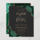 Une aquarelle couleur vert émeraude ornée d'une parties scintillant en faux or apparaît dans deux coins de cet élégant design. Personnalisez-le avec les noms du couple en écriture manuscrite de couleur or sur une grande carte grise. Ajoutez les détails du mariage en cuivre doré et en polices italiques sur un arrière - plan noir en ardoise. L'envers est assorti d'un design d'agate vert et or.