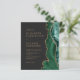 Le bord droit de cette élégante faire-part de mariage moderne est orné d'une bordure en aquarelle vert émeraude, bordée d'une parties scintillant en faux or. Le texte personnalisable combine des polices serif, cuivre et italique de couleur or sur un arrière - plan noir en ardoise. L'envers offre de l'espace pour les détails mariages sur un arrière - plan noir en ardoise solide, ainsi qu'un code QR que les clients peuvent scanner pour visiter votre site Web et RSVP, ce qui permet d'économiser le coût d'impression et d'envoi de cartes RSVP séparées.