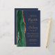 Le bord gauche de cette élégante faire-part de mariage moderne est orné d'une bordure en aquarelle vert émeraude, recouverte d'une parties scintillant en faux or. Le texte personnalisable combine écriture manuscrite couleur or, cuivre et polices italiques sur un arrière - plan bleu marine. Ajoutez des détails supplémentaires au verso, ainsi qu'un code QR pour aider vos invités à visiter votre site Web mariage.