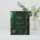 Cette élégante invitation de mariage présente une image arrière - plan d'agate d'aquarelle vert émeraude parée de parties scintillant en faux or. Le texte personnalisable combine écriture manuscrite moderne couleur or, cuivre et polices italiques. Besoin d'ajouter plus d'informations ? Customisez facilement le code QR pour diriger les invités vers votre site mariage. L'envers présente un design coordonné vert émeraude et or agate.