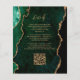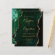 Cette élégante invitation de mariage présente une image arrière - plan d'agate d'aquarelle vert émeraude parée de parties scintillant en faux or. Le texte personnalisable combine écriture manuscrite moderne couleur or, cuivre et polices italiques. L'envers offre de l'espace pour les détails mariages sur un arrière - plan de course vert correspondant, ainsi qu'un code QR que les clients peuvent scanner pour visiter votre site Web et RSVP, ce qui permet d'économiser le coût d'impression et d'envoi de cartes RSVP séparées.
