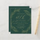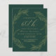 Cette invitation sophistiquée à la fête d'anniversaire du 60e anniversaire (ou à toute année) présente un dessin d'art à la ligne d'or d'une couronne de feuillage sur un arrière - plan vert émeraude. Le numéro "60e" et le nom de l'invité d'honneur apparaissent dans un élégant script d'écriture dorée, le reste du texte personnalisable en police sans serif. Le dos de la carte est vert solide.