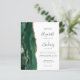 Le bord gauche de cette élégante faire-part de mariage moderne est orné d'une bordure en aquarelle vert émeraude, recouverte d'une parties scintillant en faux or. Le texte personnalisable combine écriture manuscrite, copperplate et polices italiques en gris fusain sur un arrière - plan blanc. L'envers est assorti d'une agate vert émeraude et or.