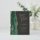 Le bord gauche de cet élégant mariage moderne, à l'exception de la carte de date, est doté d'une bordure en aquarelle vert émeraude, ornée d'une parties scintillant en faux or. Le texte personnalisable combine écriture manuscrite dorée, cuivre et polices italiques sur un arrière - plan noir ardoise. L'envers est assorti d'une agate vert émeraude et or.