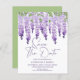 Budget Enregistrer La Date Aquarelle Wisteria Lilac Wedding Enregistrer La Date Invitations présente d'élégantes fleurs de glycine à l'aquarelle en lilas mou, lavande et violet avec des feuilles verts sur un arrière - plan blanc avec vos informations Save The Date ci-dessous. Personnalisez en modifiant le texte dans les zones de texte fournies. Conçu pour vous par ©Evco Studio www.zazzle.com/store/evcostudio