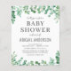 Budget Personnalisez ce Eucalyptus moderne Aquarelle Verdure Ressort Baby shower Invitation sur arrière - plan blanc avec votre message et détails. Cette invitation élégante comprend un feuillage botanique moderne et élégant avec une typographie stylée pour la célébration spéciale Mère à être.