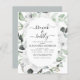 Budget Blanc Floral Roses et Eucalyptus Botanical Greenery Aquarelle Printemps ou Mariage d'été Brunch et Bubbly Champagne Bridal Shower Invitations - comprend une belle et élégante typographie script avec des fleurs botaniques modernes et la verdure pour la fête spéciale Mariée à être.