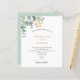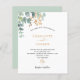 Un arrière - plan blanc chic. Décoré avec des feuilles d'eucalyptus couleur verte, des sprigs, de la verdure et un faux sprig d'or. Personnalisez et ajoutez vos noms et les détails du mariage. Lettres noires. Dos : couleur arrière - plan verte.
