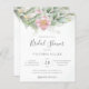 Belle invitation à la douche nuptiale avec eau rose fleurie eucalyptus et feuilles d'or.