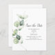 Carte d'annonce de Budget Eucalyptus Greenery Script Enregistrer la Date que vous pouvez facilement personnaliser en cliquant sur le bouton "Personnaliser" ci-dessus