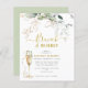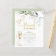 Beauté et plaisir avec ce déjeuner Brunch & Bubbly Fête de mariage invitation conçue avec des branches d'eucalyptus douces et vaporeuses, des feuilles dorées, et un fond vert menthe au dos de la carte. Personnalisez facilement avec le nom de la future mariée et d'autres informations importantes.