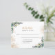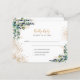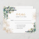 Un arrière - plan blanc décoré de verdure d'eucalyptus et de feuilles dorés et de parties scintillant en faux or tombe. Personnalisez et ajoutez la réponse par date et vos noms.