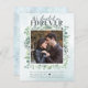 Cette élégante carte de fiançailles photo à l'eucalyptus sur papier moins cher est parfaite pour faire connaître à votre famille et vos amis les bonnes nouvelles avant d'avoir un jeu de date mariage. Des sprigs d’eucalyptus à l’aquarelle encadrent la photo, à la texture arrière - plan bleu poussiéreuse, et le faire-part "Nous avons décidé à jamais" avec les noms du couple, la date et le lieu du fiançailles. Le fond est en marbre bleu poussiéreux. Si vous avez besoin d'aide en design, ou si vous souhaitez faire correspondre des produits ou d'autres couleurs, veuillez me contacter par Zazzle.