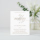 Présentant notre modèle classique et romantique, avec une calligraphie intemporelle ornée d'une fausse texture métallique dorée pour une touche de luxe supplémentaire. L'élégant jeu de couleurs blanc et or crée une atmosphère contemporaine mais romantique et peut être facilement customisé pour répondre à vos besoins. Complétez avec le code qr pour vos invités à rsvp en ligne.