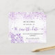 Une petite fille et tendance Enregistrer la carte Date pour une fête d'anniversaire de 18e (ou tout âge). Un élégant arrière - plan blanc décoré avec de la poussière de parties scintillant violette, couleur lavande et une robe. Personnalisez et ajoutez une date et un nom/âge. Lettres noires et violettes. Le texte : Save the Date est écrit avec un grand script de style à la main tendance.