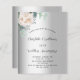 Un arrière - plan faux argenté. Décorée d'une floraison blanche, d'une fleur de pivoine et d'une verdure d'eucalyptus couleur verte à l'eau. Personnalisez et ajoutez vos noms et les détails. 1 feuille = 1 invite imprimé bord à bord.