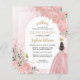 Floral Blush Rose Faux Or Princesse Gown Robe Parties scintillant Étincelle Tiara Couronne Papillon 15e anniversaire Quinceanera Invitation