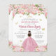 Moderne Cute Floral Blush Rose Princesse Gown Tiara Couronne Robe Papillon Or Parties scintillant Étincelle 15e anniversaire Quinceanera Invitation