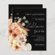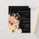 Une petite invitation de 4,5 x 5,6" à un prix abordable sur une carte semi-brillante de 110 livres d’une épaisseur similaire à une carte postale (bien qu’elle ne puisse pas être envoyée comme carte postale). Citrouille floral Script Halloween Party Black. Un script manuscrit pour Halloween Soirée et le reste du texte que vous pouvez facilement personnaliser. Les fleurs de couleur automne et le citrouille coulent sur le côté gauche et à travers le fond et sont également à l'arrière,