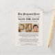 Ce budget Funny Journal Mariage Enregistrer la date Le prospectus est un parfait mélange de charme et d'abordabilité. Avec son design ludique inspiré des journaux vintages, ce flyer ajoute une touche de fantaisie à vos annonces mariages sans casser la banque. Avec des gros titres pleins d'esprit et des graphismes créatifs, il est sûr d'apporter un sourire aux visages de vos invités. Personnalisez-le avec vos détails mariages et faites savoir à vos proches de sauver la date d'une fête remplie de rire et de joie. Préparez-vous à faire une impression mémorable avec ce bon et bon marché enregistrer le prospectus de date!